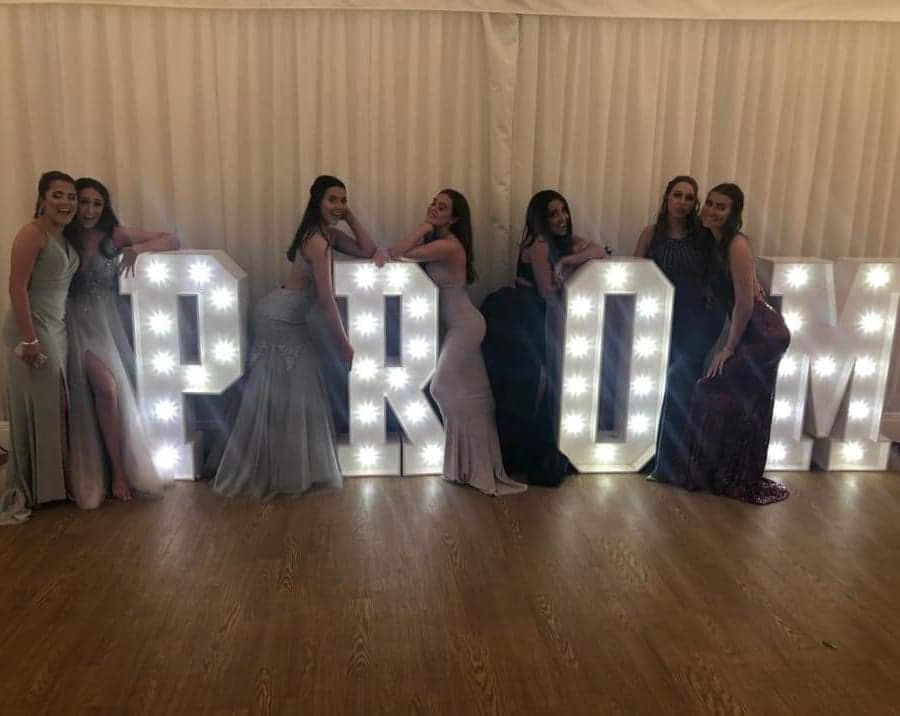 Hire our 4 foot white wooden Prom in Lights for your leavers party - only £175 for extra wow factor and a great photo opportunity!