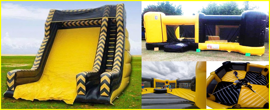 Take a slide down the mega 18 foot platform slide and pop a ball in the hungry hippo game - get this package and not only do you save money but you add double the fun!